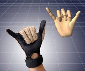 - 18個傳感器的數據手套設有2個彎曲傳感器,每個手指,四綁架傳感器,再加上傳感器測量大拇指交叉,掌心弓,手腕屈曲,和手腕被綁架。
